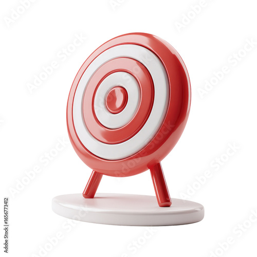 3D rendered target icon. Red target with white rings, mounted on a small white pedestal. Glossy finish. Simple, clear, focused