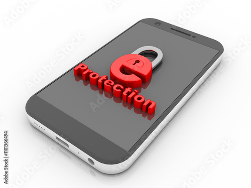 3d rendering E-mail symbol protected lock in mobile phone. Internet security concept