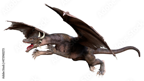 3D Rendering Fairy Tale Dragon on White