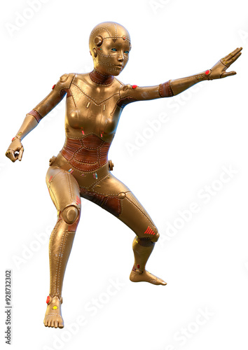 3D Rendering Female Robot on White