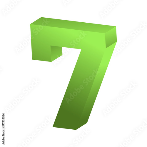 3d rendering green number 7 isolated png file