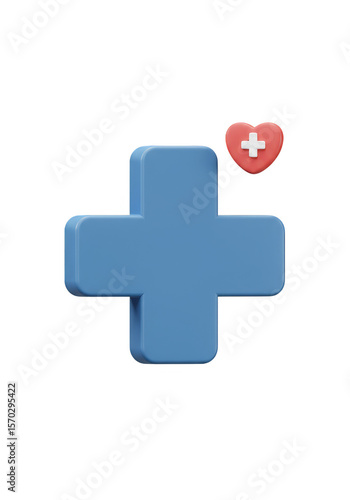 3D Rendering Medical Cross Symbol with Heart Health on Transparent