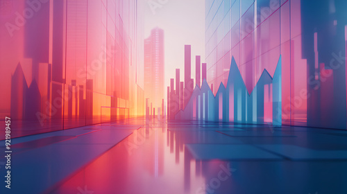 3D rendering of an abstract background with financial graphs and skyscrapers,
