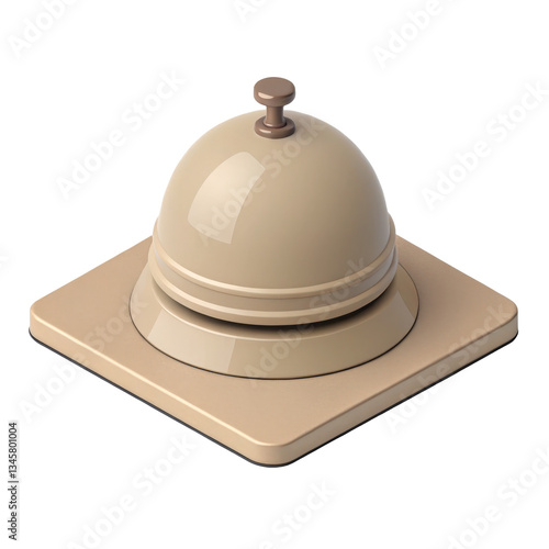 3D rendering of minimalistic bell icon in solid taupe, featuring smooth, glossy finish and simple, elegant design. bell sits on square base, exuding modern aesthetic