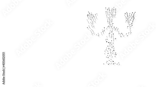 3d rendering of nails in shape of symbol of vintage candelabra with shadows isolated on white background
