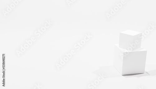 3d rendering of two stacked white cubes whith a lots of space beside the cubes