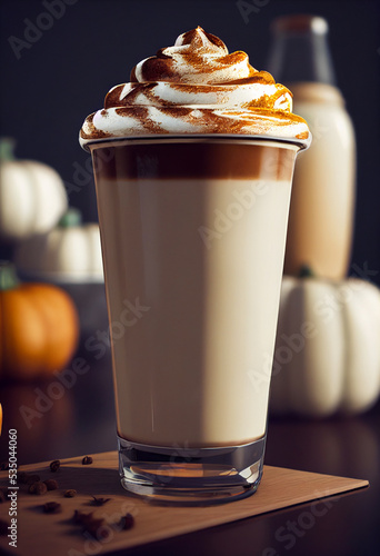 3d rendering pumpkin spice latte in big cup with whipped cream.
