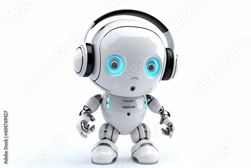 3d rendering robot tin toy with headset on white background.AI Generative