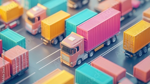 3D rendering, top view, logistics network, import-export, pastel color and flat design for trade