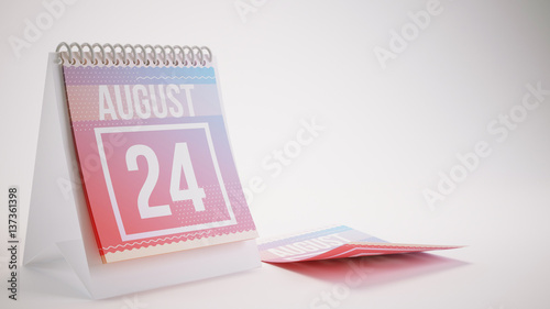 3D Rendering Trendy Colors Calendar on White Background - august 24