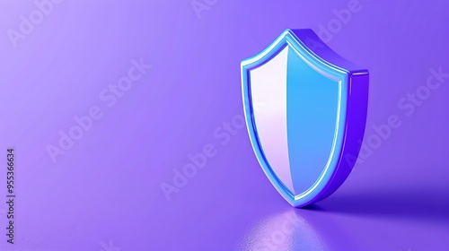 3D shield on a purple background symbolizing security, protection, and safety. Ideal for cybersecurity, insurance, and secure technology themes.