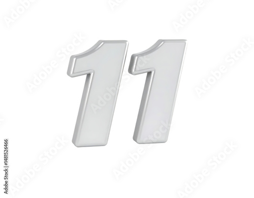 3D Silver Number Eleven on Transparent Background