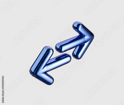 3D Sleek Metallic blue bidirectional arrow icon symbolizing exchange and transfer. 3d illustration