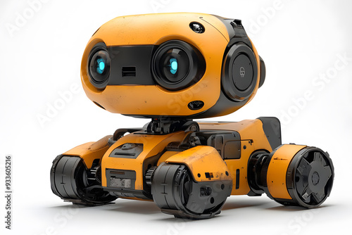 3D Small cute robot for delivery isolated on white background. The future of automated delivery