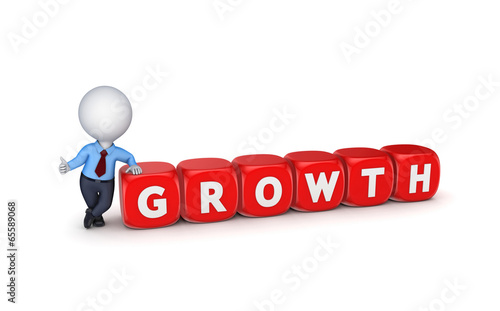 3d small person with word GROWTH.
