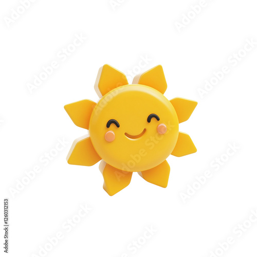 3D sun, yellow, on white background.