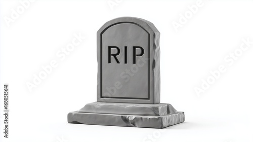 3D tombstone icon with simple RIP engraving, soft edges, clipart on white background