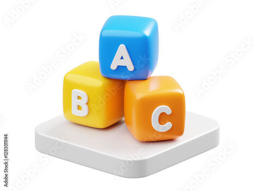 3D Transparent ABC Blocks Alphabet Letters Cubes Toy for Children Education and Learning Isolated on png Background.