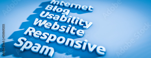 3D Typo Grafik mit Website, Blog, Spam Usability