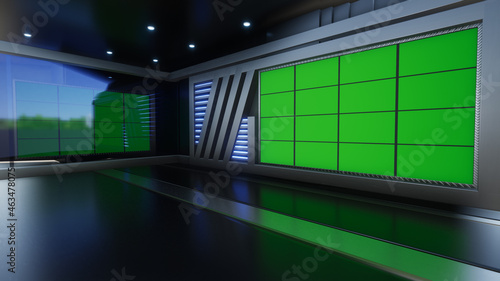 3D Virtual TV Studio News with green screen, 3D Rendering