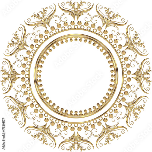 3D-image golden chrome central ornament for ceiling decoration