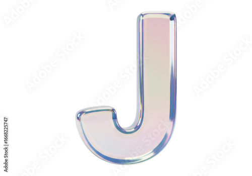 虹色の3D光沢のある文字J 透明背景の装飾的なアルファベットデザイン