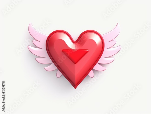3D-style imitation cartoon heart icon with wings on a white background