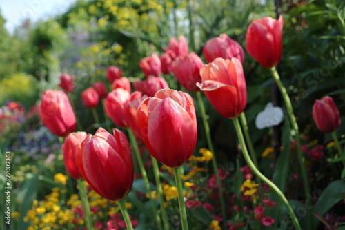 春に咲く、たくさんの赤いチューリップ【4月】