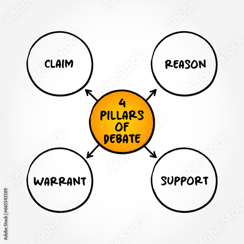 4 pillars of Debate - process that involves formal discourse on a particular topic, mind map text concept for presentations and reports