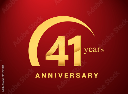 41st years golden anniversary logo with golden ring isolated on red background, can be use for birthday and anniversary celebration.