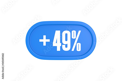 49 Percent increase 3d sign in light blue color isolated on white background, 3d illustration.
