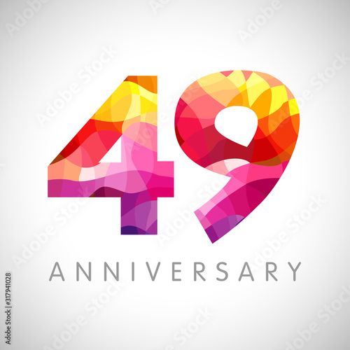 49 th anniversary numbers. 49 years old facet logotype. Age congrats, congratulation idea. Isolated abstract graphic design template. Creative 4, 9 3D yellow red digits. Up to 49% percent off discount