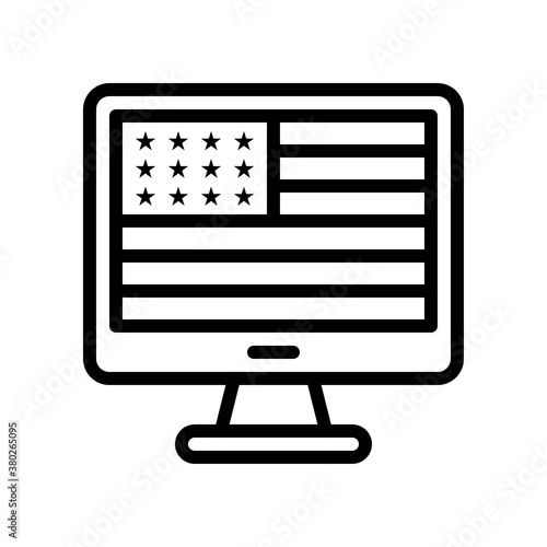 4th of july related united state flag in computer screen with small stars vectors in lineal style,