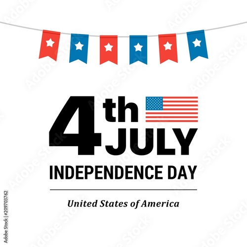 4th of July the Independence Day card with many little flags. Flat vector patriotic illustration card