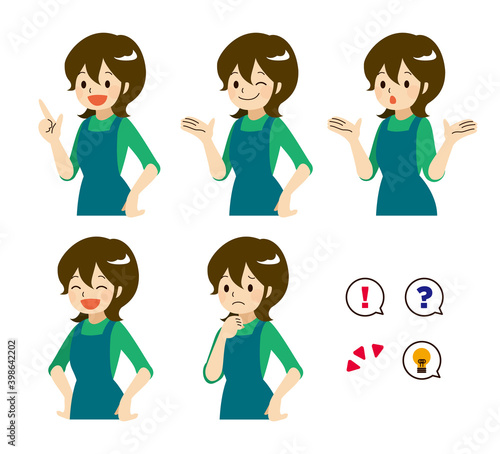 5種類の表情の主婦イラストとふきだしアイコンセット