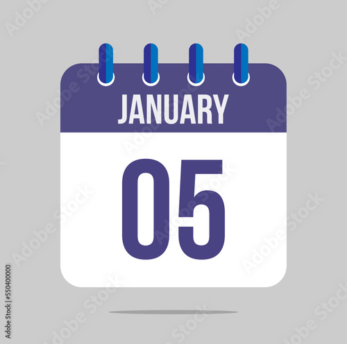 5 january calendar vector. Calendar icon for january with marked date. Design for schedules, meetings and appointments