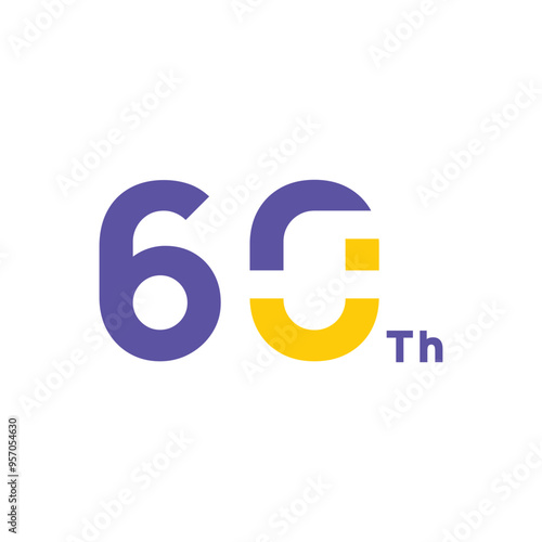 60 Th Anniversary Number Design Flat Style Collection Vector Template Illustration
