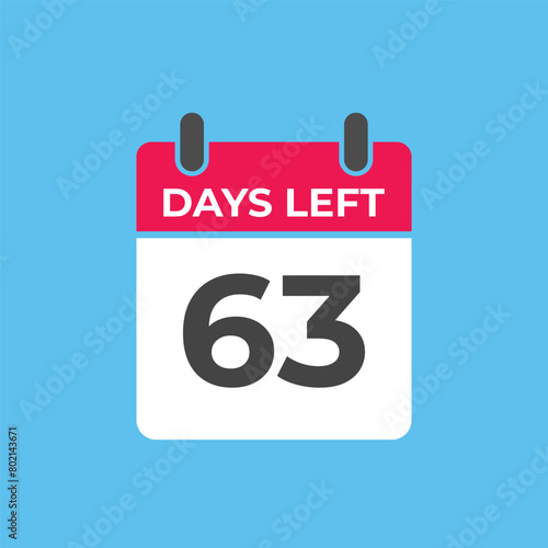 63 days to go countdown template. 63 day Countdown left days banner design. 63 Days left countdown timer