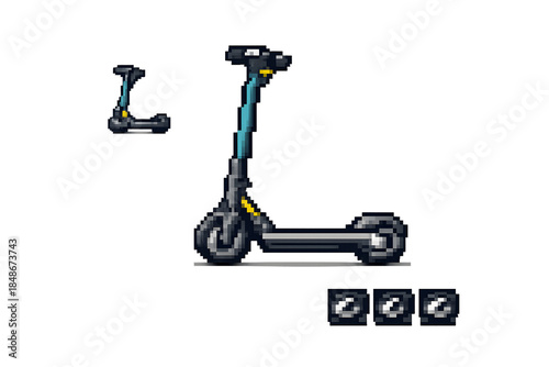 8-Bit Electric Kick Scooter — Side View Pixel Vehicle (PNG, 32–128px)