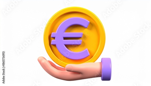 A 3d illustration of a hand holding a gold euro symbol represents a successful business finance concept for European banking, currency investment, and global economy exchange