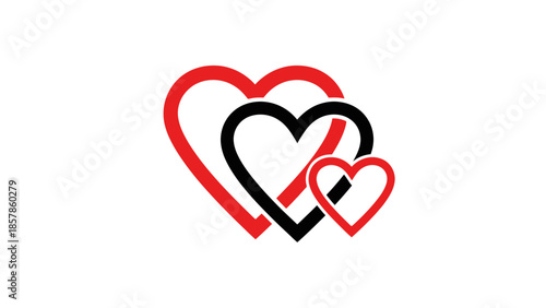 A 3d vector illustration of a red heart with ribbon and two hearts joined by a romantic red ribbon as a symbol of love and passion for Valentine's Day