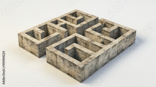 A 3D-rendered maze structure with multiple paths and dead-ends, placed on a white background for a visually appealing quiz game.