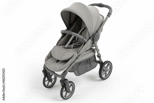a baby stroller, essential infant product, lightweight design, gray, isolated on white background