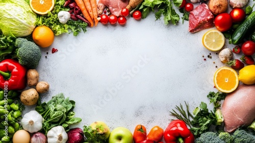 A balanced diet and proper nutrition contribute to overall well being and prevent chronic diseases, with empty copyspace in the middle