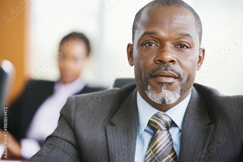 A bank officer in a formal setting, attentively answering questions from a business client about loan agreements