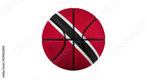 A basketball with the flag of trinidad and tobago on it against a black background in the center