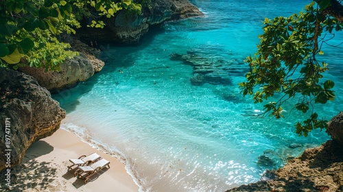 a beach with a couple of chairs