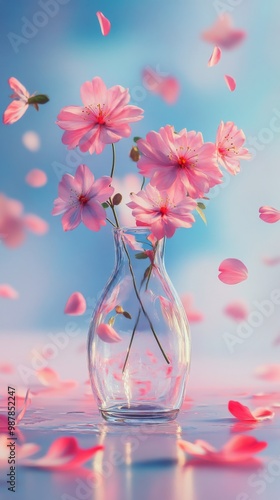 A beautiful arrangement of pink cherry blossoms sits gracefully in a glass vase