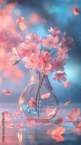 A beautiful arrangement of pink cherry blossoms sits gracefully in a glass vase