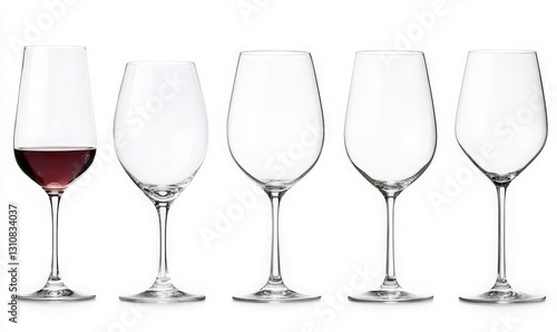 A Beautiful Assortment of Elegant Wine Glasses Displayed on a Crisp White Background for a Sophisticated and Stylish Presentation.
